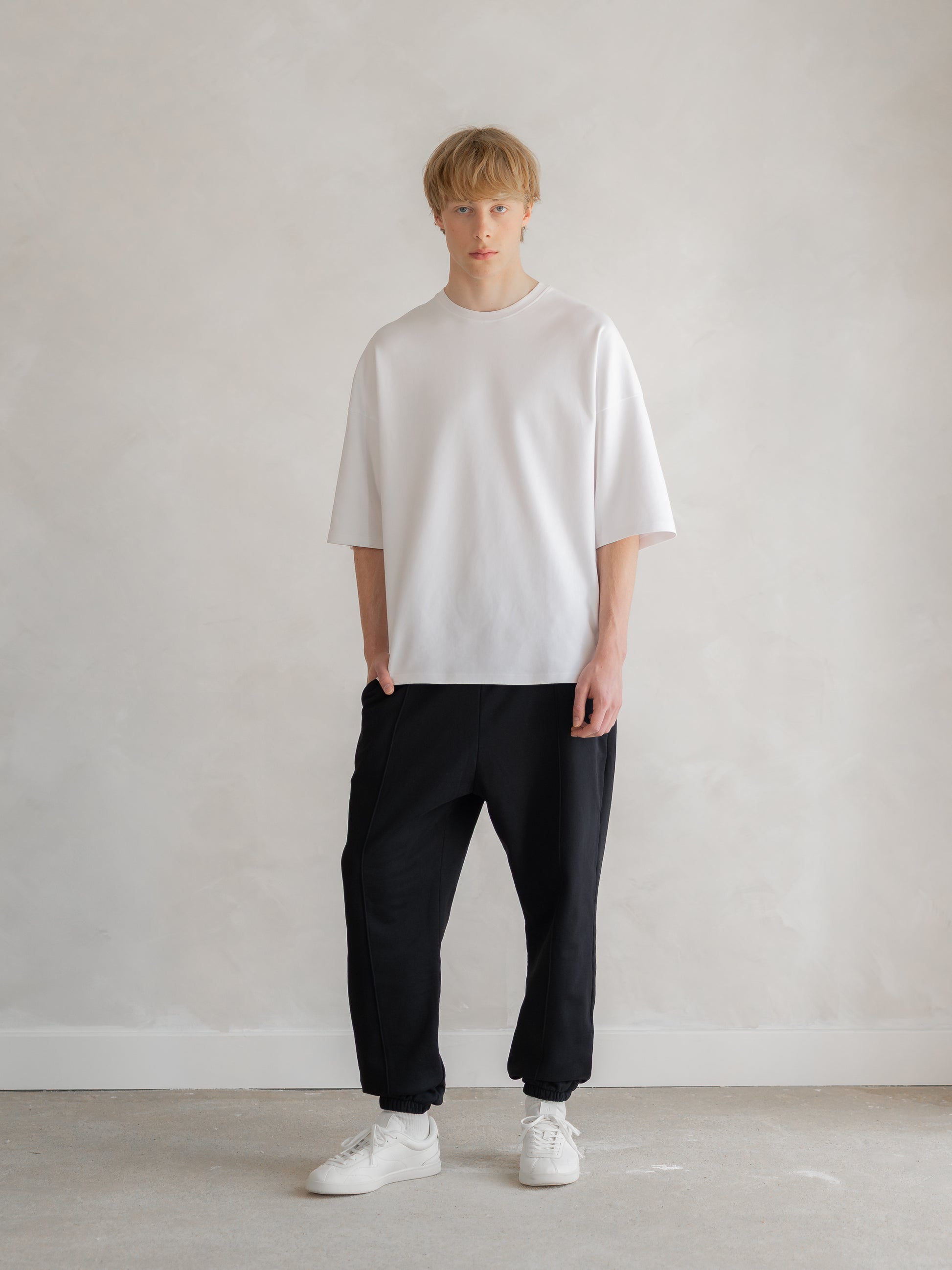 The Pima Heavyweight Tee is made in Portugal from a densely woven, 295 GSM pure Pima cotton for a distinctly soft feel and substantial weight. Designed with dropped shoulders and half-length sleeves, the oversized fit allows for a modern, controlled drape.